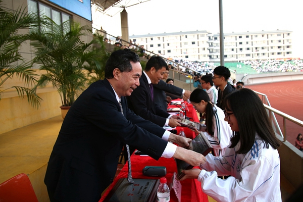 在全场热烈的掌声与欢呼声中,张立钦宣布湖州师范学院第十九届运动会闭幕。