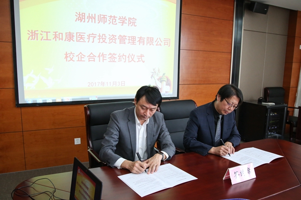 11月3日上午,我校与浙江和康医疗投资管理(集团)有限公司签署校企合作框架协议。校纪委书记朱鸿、副校长马志和,浙江和康医疗投资管理(集团)有限公司董事长、总裁钱培鑫,副总裁兼事业发展部总经理陈雄,医院管理事业部总经理裘华森,总裁助理钱默儒等出席签约仪式。仪式由朱鸿主持。对外联络处负责人、医学院领导班子参加签约仪式。