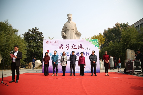 11月8日下午,我校首届“君子之风”建设礼仪文化年启动仪式在中校区胡瑗广场精彩开启。校党委副书记黄建平,党委委员、宣传部长杜宁,校党委学工部、团委等职能部门负责人、教师教育学院领导,大学生礼仪与形象塑造中心负责人、二级学院党委副书记等出席,与众多师生代表们一起共享了这场礼仪盛宴。