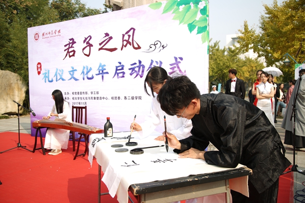 杜宁在致辞中指出,君子礼仪文化传播是我校大学生德育的主要载体,也是“君子之风”建设的重要落脚点,对加强大学生礼仪素质教育,培养学生文明礼仪素养与形象塑造能力,提升学生人际交往与沟通能力,进而培育具有高尚道德、高雅情趣、文明举止、宽广胸怀的当代君子,具有重要意义。为办好本届礼仪文化年,她提出两点希望:一是希望将君子礼仪文化传承与贯彻学习十九大精神相结合,坚定学生学习、传承、创新民族优秀文化的责任感,坚定文化自信;二是希望将君子礼仪文化践行与学校本科教学审核评估相结合,把礼仪文化融入到大学生的日常学习生活中去,使文明礼仪在校园内外蔚然成风。