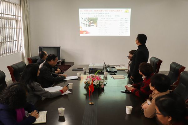 黄建平代表学校党委向检查组汇报了学校党建工作。黄建平表示,学校党委始终坚持立德树人根本任务,党委书记认真履行基层党建工作第一责任人职责,抓党建、推改革、促发展,层层传导压力,落实压实责任,推动学校加快发展、内涵发展、赶超发展。校党委坚持领导带头、精心部署、营造浓厚氛围,深入学习贯彻党的十九大精神;通过定期分析研究、制定落实任务清单和问题整改清单、开展基层党组织建设专项督查,层层落实,认真履行抓基层党建工作责任;通过开展基层党建全面落实年活动、严肃党内政治生活、规范支部主题党日活动,扎实推进“两学一做”学习教育常态化制度化;认真贯彻落实全国全省高校思想政治工作会议精神和基层党建重要文件精神;推行“党建+”工作方式,有效推进申硕、更名大学、本科教学工作审核评估等工作。同时,从区域马克思主义中国化研究、加强党支部建设、党员志愿服务等三个方面汇报了我校基层党建工作的特色和做法,并分析了我校党建工作中存在的问题,提出了下一步加强和改进学校党建工作的对策与思考。