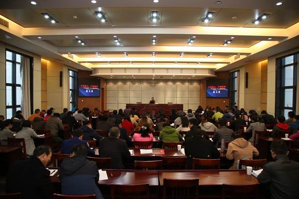 11月29日下午,社会发展与管理学院虞文清教授以《不忘初心,不辱使命》为题,为培训班学员作了学习党的十九大精神专题辅导报告。他紧密结合党的十九大报告,紧扣习近平总书记新时代中国特色社会主义思想,从改革开放进入新时代、指导思想举新旗帜、现代化开启新征程、党的建设新气象新作为四个层面,以更高的政治站位、新颖的理论观点、生动形象的例子和通俗易懂的语言,对党的十九大精神作了较为全面的解读,深化了学员们的认识。