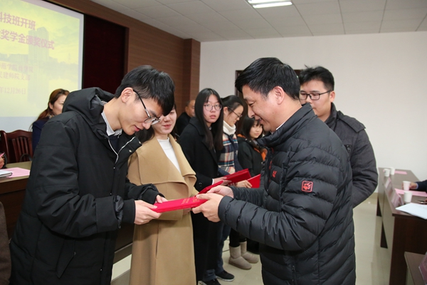 陈新财和徐一忠介绍了各自企业概况,希望同学们要树立远大理想,力争在以后的工作中取得不凡成就;要积累丰富的知识,为将来事业发展作储备;要培养丰富的组织协作能力和团队合作精神。两位企业家还为13位获得“威谷科技奖学金”和“海瑞科技奖学金”的同学颁奖。