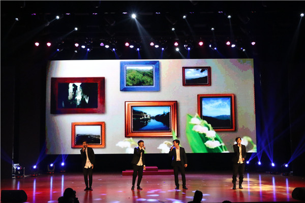 一段由SD街舞社带来的激情四射的开场表演拉开了晚会的帷幕。由校园十佳歌手带来的歌曲串烧《元来师你》,以优美的旋律唱响青春,将师院记忆融入悦耳的歌声中;琴音袅袅,曲声悠悠,艺术学院音乐系师生的二胡演奏《民族风连奏》描绘了如画江山,展现了异域风情;花旦与舞蹈交汇,一颦一蹙尽显风华,教师教育学院带来的舞蹈节目《俏花旦》吸引着观众的眼球;艺术学院的室内乐表演《大鱼海棠》使得大家仿佛置身于波澜壮阔的汪洋,看海天一色,听风起雨落;在我校留学生带来相声表演《元旦“吃”文化》和舞蹈《shatter me》中,中外文化交流的趣味尽显其中;灯光突暗,理学院星海艺术团的演员身着荧光服饰,带来情景剧《火柴人的故事之大梦初醒》,现场掌声雷动;最后,晚会在红柳艺术团指导教师共同演唱的《从爱出发》中落下帷幕。