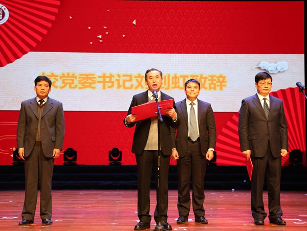 校党委书记刘剑虹在致辞中回顾了过去一年学校在学科建设、人才培养质量、科研和服务地方工作、师资队伍建设、开放办学以及思政工作等方面取得的新成绩,并表达了对全校教职工、老领导、老同志和广大校友的衷心感谢。他指出,2018年学校将迎来高等教育60周年暨办学102周年盛大庆典,这是全体师院人期盼的团聚盛会,是学校发展史上一个重大事件。学校将以举办60周年校庆为契机,全面回顾办学历史、系统总结办学经验,以新的奋斗目标凝心聚力,激发全校师生员工与广大校友的干事创业之力和爱校荣校之情,进一步拓展对外交流、扩大社会影响、提升学校声誉,早日建成“国内有一定影响、一定水平、一定地位的湖州师范大学”。今天,距校庆还有100天,全校上下要进一步统一思想,提高认识,把筹备好校庆活动作为2018年重点工作之一,切实保证高水平高质量地完成好校庆各项工作任务;全体师生员工要充分发挥主人翁精神,积极参与各项活动,做好本职工作,用实际行动向校庆献礼。