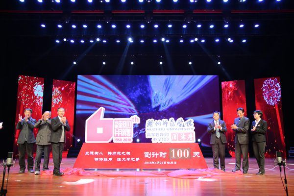 刘剑虹、张立钦、老领导蔡清江、校友总会会长胡璋剑、陈永昊、学生会主席沈兆玥共同为倒计时牌揭幕。揭幕后,大屏幕上播放了学校师生员工、校友代表“为师院点赞,为母校点赞”的视频。