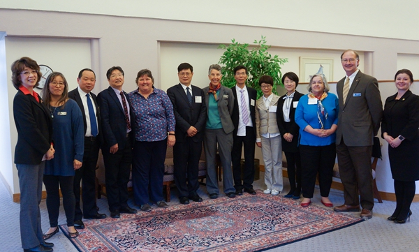 3月9日,考察团首先访问了美国北科罗拉多大学。作为我国教育部批准的中外合作办学项目的亲密合作伙伴,北科罗拉多大学校方代表、助理教务长Nancy M Sileo女士对代表团到访表示非常热烈欢迎,并详尽地介绍了学校的办学历史、规模现状、专业设置、教学模式及师范教育特色,充分展示了学校发展的前景及与我校国际化深度合作的愿景。蒋云良也向对方详细介绍了我校办学历史、发展成就、学科特色等方面情况,并介绍了我校研究生教育和留学生教育工作,指出两校学科专业吻合度较高,有着良好的合作发展空间。双方一致认为,两校间要在办好“学前教育”中外合作办学项目的基础上,进一步拓宽交流渠道,加强多层次合作,共同促进两校之前的教育发展与合作。校方专人陪同代表团考察了北科罗拉多大学图书馆、学生事务中心等,双方对口部门负责人就具体合作项目进行了全面深入的讨论。