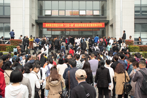 据悉,“三位一体”招录方式是将考生高中学考成绩、综合素质测试成绩以及高考成绩,按一定比例(我校为2∶3∶5)折算成综合分从高到低择优录取。“三位一体”各专业招生录取列入普通类提前录取,考生须在五个院校志愿栏的第一志愿栏填写我校志愿,填报专业须符合选考科目范围,我校师范组组内专业间可兼报,非师范组组内专业不可兼报,师范组与非师范组组间不可兼报,具体详见《湖州师范学院2018年“三位一体” 综合评价招生章程》。3月28日起,考生可登陆报名系统查询综合素质测试成绩。