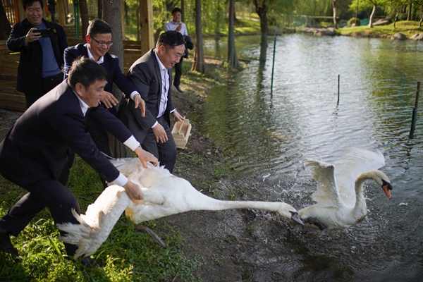 4月8日下午,中南百草原集团有限公司董事长崔世豪捐赠白天鹅暨客座教授聘任仪式在我校德清湖畔举行。湖州市旅委主任干永福、中南百草原集团董事长崔世豪、校长张立钦、副校长陈亚明出席仪式。中南百草原集团有关人员、学校相关职能部门负责人以及师生代表参加仪式。仪式由陈亚明主持。