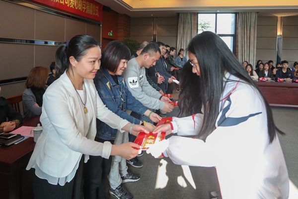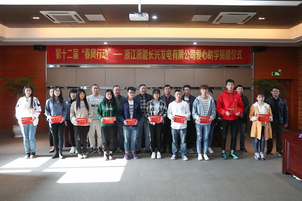 仪式上,浙能长兴发电有限公司领导和职工代表将募得的4万元善款交到了我校20名家庭经济困难学生手中。历届受助学生代表为爱心资助人送上亲手制作的绢花。这是浙能长兴发电有限公司继2007年发起“春风行动”爱心助学活动以来,第十二年结对资助我校家庭经济困难学生。