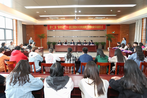 4月18日下午,我校举行第十二届“春风行动”暨浙江浙能长兴发电有限公司爱心助学捐赠仪式,校党委副书记蒋云良,浙江浙能长兴发电有限公司党委书记、董事长袁伟中,浙江浙能长兴发电有限公司工会主席王伟洪出席,校学工部负责人、体育学院负责人、浙江浙能长兴发电有限公司职工代表及全体受助学生参加了活动。