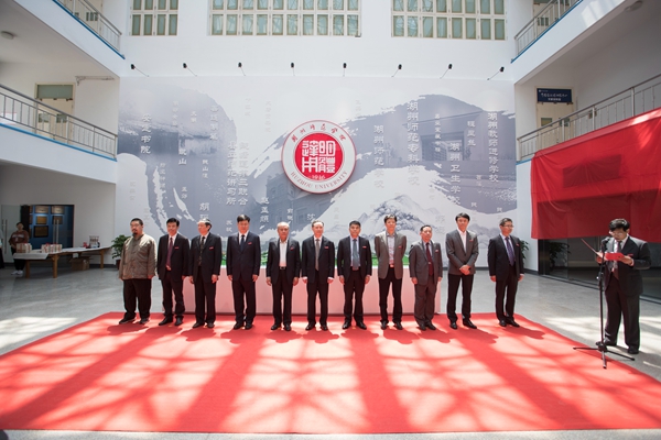 校党委书记刘剑虹、校长张立钦,老领导蔡清江、胡璋剑共同为校史博物馆揭牌。