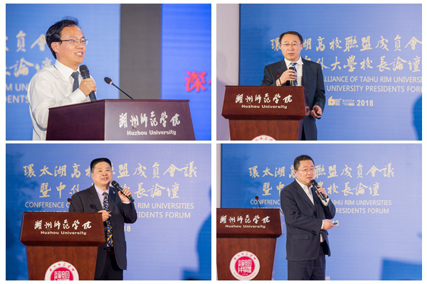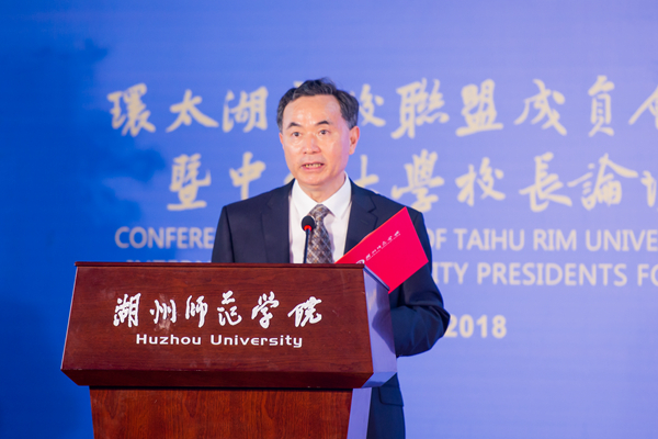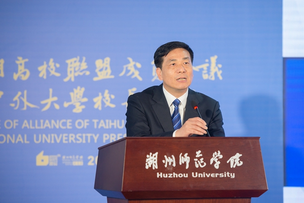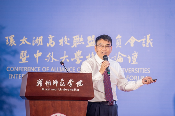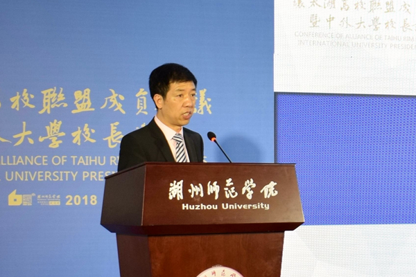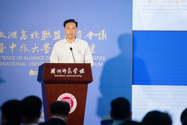 于永明表示,当前浙江省正在全面实施高等教育强省战略,环太湖高校联盟是推动高等教育内涵式发展、落实高等教育强省战略和教育现代化的重要举措。联盟进一步拓展了“政产学研”、协同创新发展的新途径,激发了产教融合新活力,为高校更好地适应新常态下动能转换、经济转型、创新驱动搭建了新平台,必将推动环太湖区域高等教育更好地快速发展。他认为,探讨新时代高等教育改革与发展之路,共商高等教育改革与发展之计,非常有意义。他期待与会嘉宾发表真知灼见,交流成功经验,为浙江省高等教育发展提出宝贵意见。同时,也希望环太湖高校联盟成员单位多多关注南太湖,尤其是湖州的经济社会发展,深化校地合作,努力打造区域内城市与大学命运共同体。