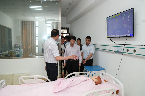 钱三雄一行实地走访调研了湖州市红十字应急救护学院实训教室、高级生命支持中心、老年康复训练实验室,并详细了解了我校红十字应急救护学院的建设情况和工作成效以及我校医学院人才培养情况,尤其是老年护理人才培养的相关情况。