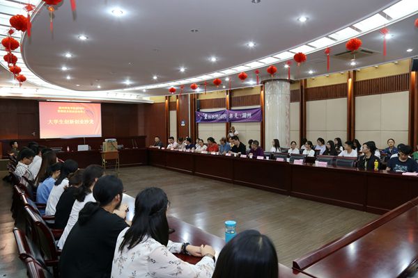 为激发大学生创新创业活力,营造积极向上的创新创业氛围,让我校更多的大学生留在湖州就业创业,5月23日下午, 我校在明知楼203会议室举办2018年留湖就业创业活动季之“大学生创新创业”沙龙活动。湖州市中小企业服务中心主任王海波、乐客独角兽创始人崔磊、湖州信鑫领创有限公司总经理于一丁、湖州新奥燃气有限公司总经理陈泓予、老娘舅餐饮有限公司人力总监助理杨丽丽、各二级学院就业辅导员、校就创协会学生干部以及大学生创业孵化园创业团队成员等140余人参加了活动。