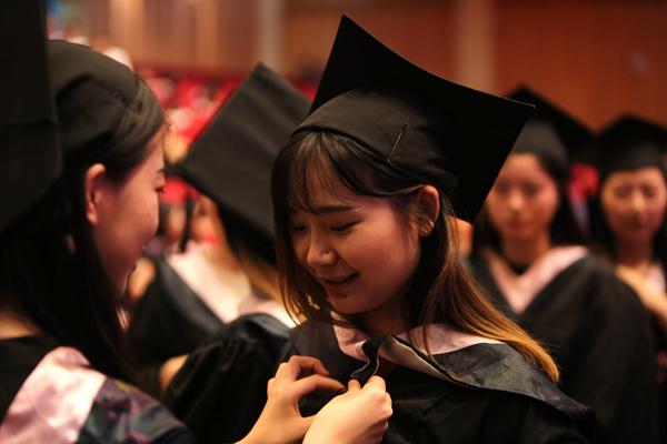 当天下午,2018届毕业生学士学位授予仪式在东校区大会堂举行。校领导班子成员、教授代表为获得学士学位的学生正冠拨苏、颁发学位证书并合影留念。据悉,今年我校共为4310人授予学士学位,其中师院本部2483人,求真学院1827人。