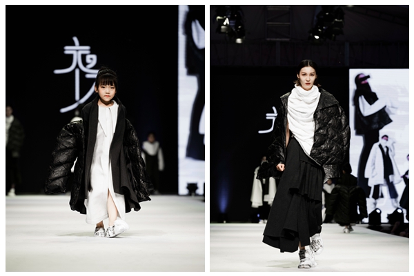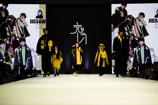 晚上七点,伴随着动感的音乐与炫丽的灯光,大秀正式拉开帷幕。一件件极具创意、剪裁精良的服装在童模和专业模特的演绎下,将观众带入时尚与创意碰撞的视觉盛宴之中。同学们的作品或精致或休闲,或可爱或摩登,“萌萌哒”的小模特们走起秀来也有模有样、潮范十足,每一套搭配与每一场走秀都强烈地冲击着每一位观众的瞳孔,使观众大饱眼福。