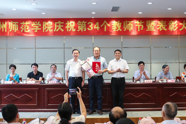 浙江省高校“优秀共产党员”、湖州市“师德先进个人”和校“陆增镛教师奖”获得者,文学院宋万林教授作为教师代表发言,表示一位优秀的教师,一定会把“无私奉献”内化到灵魂深处,实现从自觉到直觉,从意识到无意识,从有形到无形的本质飞跃,实现学高为师、身正为范、奉献为本、师爱为魂的内化。