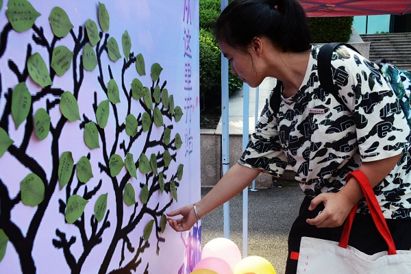 而生命科学学院设立了“生命之树”环节,理学院设立了微心愿墙,新生们可以在墙上畅所欲言,展望自己的未来。