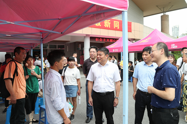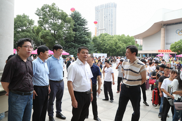 上午9时,湖州师范学院校长、求真学院董事长张立钦,湖州师范学院校务委员会副主任、求真学院院长杨柳,湖州师范学院党委副书记黄建平、蒋云良,副校长叶金云,纪委书记朱鸿在相关部门负责人的陪同下,首先来到明知楼和燕英体育馆的新生报到点,亲切慰问忙碌在工作一线的老师、学生干部,查看了具体注册报到工作进程,并和在场的新生以及家长进行了深入的沟通交流。