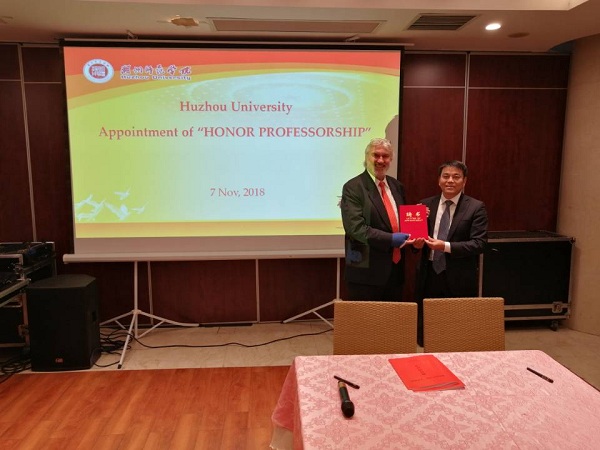 HORST STÖCKER教授感谢学校的邀请和聘任,表示将进一步推进法兰克福高等研究院与湖州师范学院的深度交流与合作,尽最大可能为湖州师范学院的发展贡献力量。