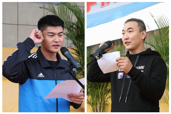 裁判员代表、体育学院教师侯建柱,运动员代表、外国语学院学生赵辰分别郑重宣誓。