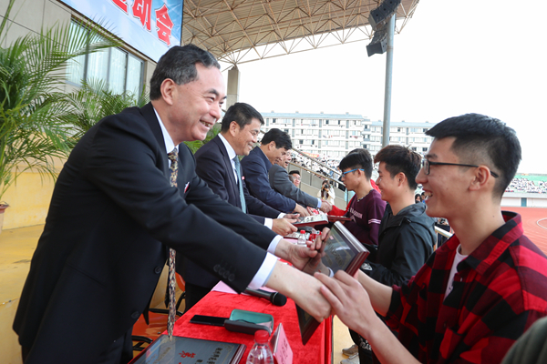 11月10日下午,我校第二十届运动会闭幕式在东校区田径场隆重举行。校党委书记刘剑虹,校长张立钦,校务委员会副主任、求真学院院长杨柳,校党委副书记黄建平、蒋云良,副校长叶金云,纪委书记朱鸿,副校长、校体委主任马志和,副校长陈亚明,党委委员、宣传部长杜宁出席,各二级学院、相关部门等数千名师生参加了闭幕式。闭幕式由马志和主持。