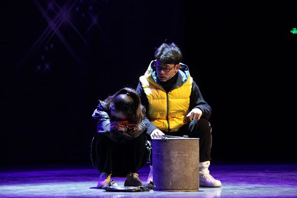 音乐伴奏起,一曲高昂的男女生二重唱《阳光路上》,为本次歌舞表演拉开帷幕。清亮的女高音歌声飞扬、沉稳的男声荡气回肠,两者合奏出完美的和声。紧接着,群舞《剪纸姑娘》上场,舞台上活泼灵动的舞者踏着默契的节拍欢快起舞,凭借出奇一致的动作,震撼全场。随后小品《圈儿》用细腻的表演将观众带入情景,质朴的故事诠释“所有圈儿都没有家这个圈儿重要”的道理。而女子独舞《一个不能停留太久的地方》触动人心,舞者动作行云流水、或急或缓,一颦一笑,将孤独感展现得淋漓尽致。此外还有古筝独奏《克罗地亚狂想曲》和萨克斯独奏《Shiny》,他们娴熟自如的演奏,无不展现着其高超的技艺水平。富有异域风情的女子群舞《畲家女儿拍》以轻盈欢快的舞步展示了畲家儿女的生活画面,表演结束后,主持人还邀请台下观众跟着表演者学习其中的一两个小节,轻松欢快之余也让人感觉到了练习的不易;男女二重唱《珊瑚海》让现场观众感受到了一场带着海风的纯粹而优美的爱情;双人舞《红色恋人》则讲述了一对革命恋人以至死不渝的爱,将自己写进了那段血色历史的故事。接下来,节奏快速,带有“炫技”性质的手风琴独奏,通过紧密和弦的连接,营造出暴风雨来临前紧张的气氛,给观众带来耳目一新的感受。紧随其后的女子群舞《花鼓声响花开处》将花鼓鼓声和美丽少女的绽放结合在一起,营造出一幅花开江南的盛景。