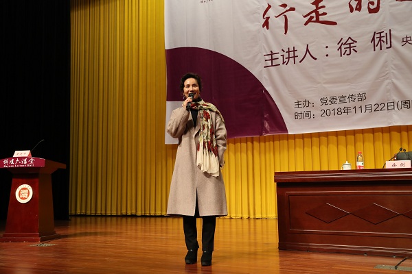 11月22日晚,中央电视台中文国际频道主持人徐俐做客胡瑗大讲堂,以“行走的边界”为主题,与师生们分享了自己的人生经历和成长感悟,带领同学们共同探寻真正的“行走”与“边界”。 讲座由校党委副书记黄建平主持。