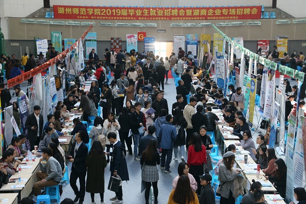 11月24日,浙江省2019届高校毕业生湖州师范学院专场暨湖商企业专场招聘会在西校区燕英体育馆举行。