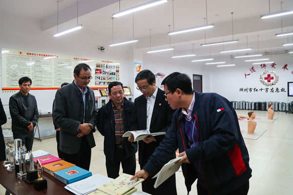 11月26日,中国红十字会副会长王汝鹏一行来我校实地考察指导“中国南丁格尔教育馆”和“湖州市红十字应急救护学院”建设工作。浙江省红十字会党组书记、专职副会长陶竞,中国红十字会总会组织宣传部部长姚立新,中国红十字会总会组织宣传部副部长边晓,湖州市委副秘书长、红十字会副会长金江澜,湖州市红十字会党组书记、常务副会长徐旭萍等陪同考察。我校副校长叶金云出席,医学院、护理学院全体领导班子陪同参观。