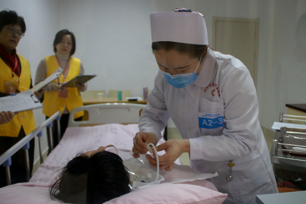 本次竞赛共有来自浙江中医药大学、温州医科大学、杭州师范大学等省内17所高校的56支队伍参赛,是历届参赛以来规模最大的一次竞赛。竞赛内容包括基于护理与健康的项目设计、项目现场答辩和综合技能比赛三个部分,采用 OSCE 模式、OSCE 管理系统组织进行,竞赛区域全程监控,其中综合技能比赛共分 3 个比赛站,分别为护理临床思维能力、团队应急抢救能力和护理单项操作技能(包括单人心肺复苏技能、鼻饲技术和动脉(桡 A)血标本采集及血气分析技术操作)。