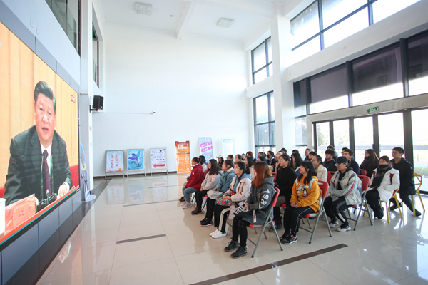 在学校的校领导班子成员以及学校相关职能部门人员在明达楼502会议室集中收看了大会直播。观看中,大家无不被习近平总书记的讲话所震撼,时不时爆发出热烈的掌声。此外,各二级党委(总支、直支)也积极组织师生通过电视、网络、新媒体平台等集中收听收看了大会直播,认真听取了习近平总书记在大会上的重要讲话。