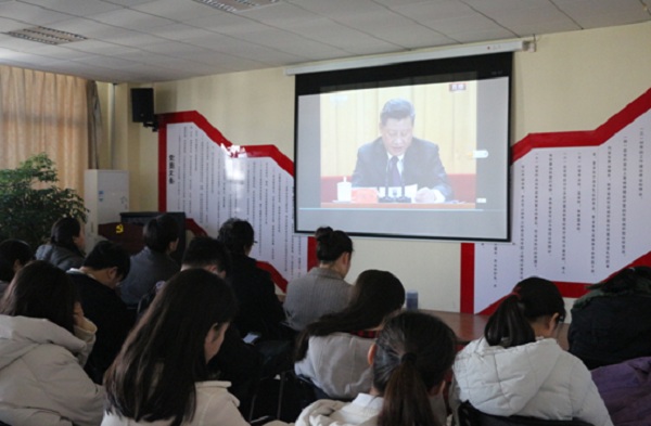 在学校的校领导班子成员以及学校相关职能部门人员在明达楼502会议室集中收看了大会直播。观看中,大家无不被习近平总书记的讲话所震撼,时不时爆发出热烈的掌声。此外,各二级党委(总支、直支)也积极组织师生通过电视、网络、新媒体平台等集中收听收看了大会直播,认真听取了习近平总书记在大会上的重要讲话。