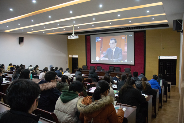 马克思主义学院师生齐聚一堂,共同观看大会直播。学生党员顾奕如同学在观看后表示,作为新时代青年,虽未经历过困难时期,但却是改革开放的受益者,也深感其所带来的获得感、幸福感。推进改革开放不断前行是每位青年的责任与使命,我们也将砥砺前行,走好实现中国梦的新长征。