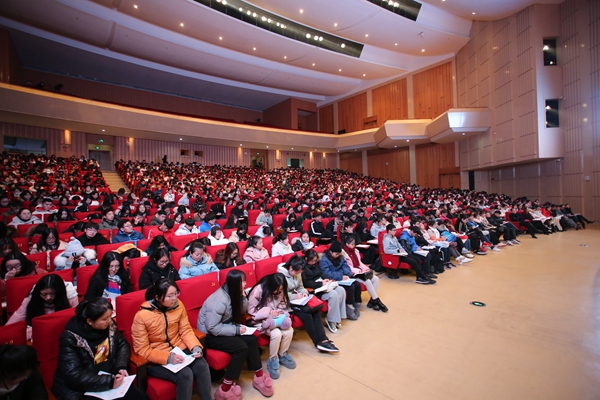 1月3日晚,“书记校长话成长”2018级新生始业教育报告会第二场在东校区大会堂举行。校长张立钦为新同学作了题为“自豪,自信,自强,自律——争做新时代的奋斗者”的专题报告。商学院、理学院、信息工程学院、工学院、生命科学学院、医学院/护理学院新生和有关学院副书记、辅导员共一千多人聆听了报告。