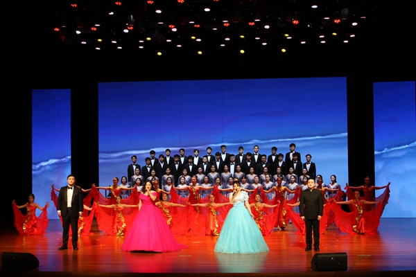 新年音乐会在民族管弦乐合奏《少林雄风》中拉开序幕。艺术学院师生带来了精彩纷呈的表演,有男声独唱《敢问路在何方》,女声独唱《历史的天空》《爱情像一只自由的小鸟》,女声组唱《女儿情》,合唱《Arirang》,独舞《待下次风起时》,群舞《绿水青山》,民族管弦乐合奏《西游记序曲》《好汉歌》,管弦乐重奏《花好月圆》,器乐重奏《自由探戈》,钢琴四手联弹《丝路驼铃随想曲》等,动听的音乐、优美的舞蹈博得与会嘉宾的热烈掌声。最后,在饱含希望和充满祝福的男女声四重唱《中国进入新时代》中,音乐会圆满落下帷幕。