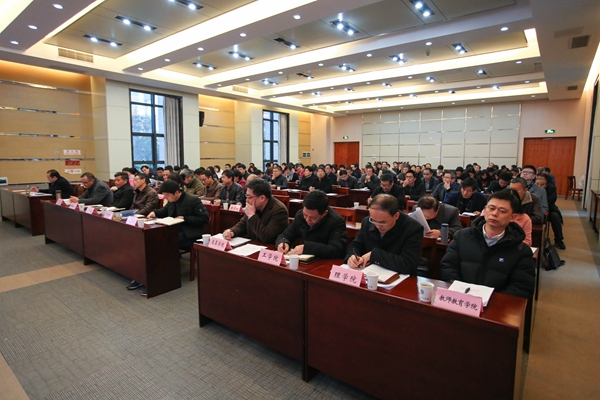 3月1日下午,我校召开2019年度工作会议。校党政领导班子出席,全体中层干部,各民主党派、知联会负责人参加。校党委书记刘剑虹发表讲话,重点部署2019年工作。会议由校长张立钦主持。