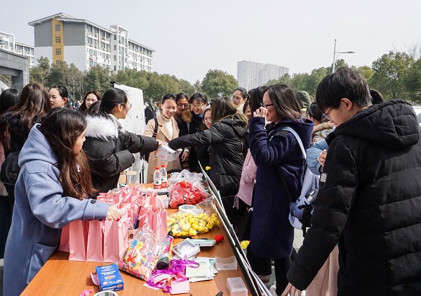 桃红梨白,三月阳春。为了给女生提供一个展现自我的舞台,彰显新时代女生的风貌,由青春健康同伴社主办,歧黄社、艺苑社协办的“三月春风,芳华如你”女生节主题活动在东校区和润楼食堂门口举行。丰富多彩的活动内容,吸引了众多同学的参与,现场弥漫着属于春天的温馨浪漫的气息。