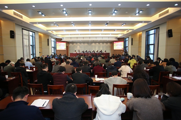 校纪委书记朱鸿结合省纪委专项督查及内部审计整改工作,对2018年我校全面从严治党工作进行了回顾总结。并围绕提高政治理论学习、压实“两个责任”、落实中央八项规定精神、加强监督检查、推进“清廉校园”建设、增强自身建设等6个方面,部署2019年全面从严治党和“清廉校园”建设工作。