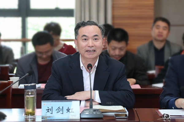 会上,刘剑虹代表学校对邵清一行的到来表示热烈欢迎,衷心感谢省社科联对我校人文社科发展的厚爱和重视。刘剑虹重点围绕近年来学校改革发展情况,人文社科发展和服务地方的现状、存在问题,以及下一步的创新工作思路作了主题汇报。刘剑虹表示,学校成立人文社科处并召开第一届文科大会后,我校文科发展在国字号项目、高质量成果、高级别奖项的争取和研究基地及新型智库建设等方面取得了长足的进步和喜人的成绩。但也清楚的认识到,我校目前还存在人文社科领军人物缺乏、省部级科研平台建设滞后和应用研究特色不明显等诸多方面的不足。刘剑虹希望,省社科联能为我校的新型智库和研究基地建设指明方向,并给予一定的扶持。