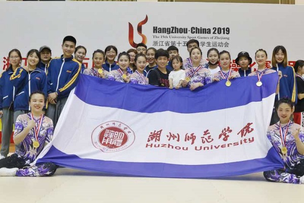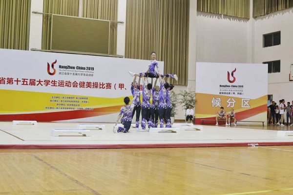 4月18-22日,由浙江省教育厅、浙江省体育局主办的浙江省第十五届大学生运动会健美操比赛(甲、丙组)在杭州师范大学下沙校区举行。我校健美操队教练唐鹏老师的带领下,勇夺1金2铜的佳绩。