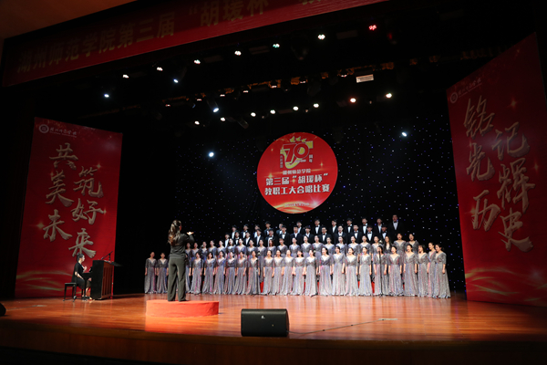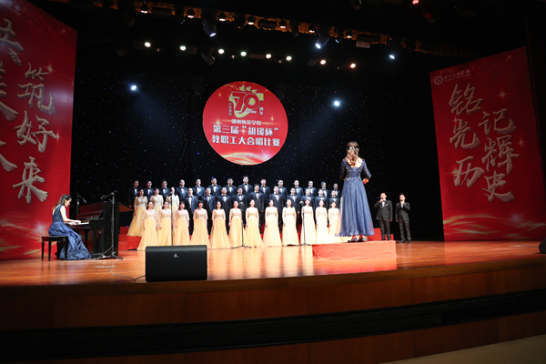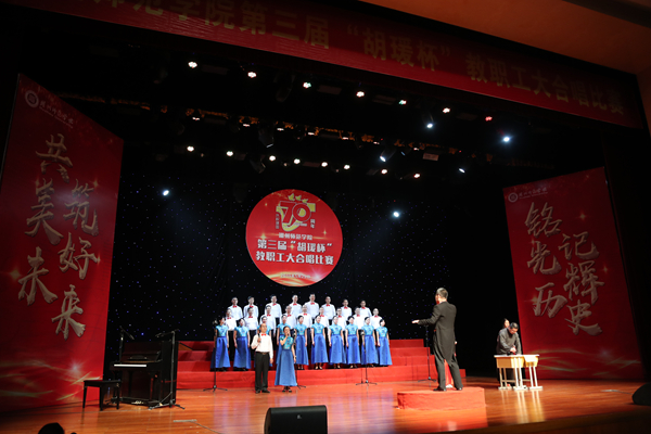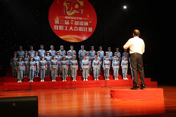 本届“胡瑗杯”教职工合唱比赛由党委宣传部、校工会主办,校团委、艺术学院协办。以建国70周年为契机,弘扬爱国主义精神,同时丰富教职工业余文化生活,增加教职工凝聚力,激发集体荣誉感。教职工们用歌声忆苦思甜,铭记革命先驱们的峥嵘岁月,用歌声赞美祖国。充分展现了我校教职工队伍不忘初心,砥砺前行,锐意进取的精神风貌。