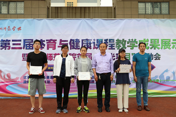 下午3:30,闭幕式在主席台下举行,在大体部主任韩秋红老师的主持下,体育学院副院长庞国庆老师、体育学院办公室主任孙华勇老师和百米定向指导教师赖新明老师为获奖运动员颁发证书,湖州师范学院第三届体育与健康课程教学成果展示暨首届“阳光项目”运动会圆满落幕。