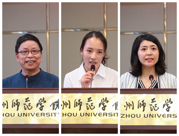 仪式上,荣休教师代表、社会发展与管理学院虞文清教授,青年教师代表、艺术学院周媛老师以及学生代表先后发言。