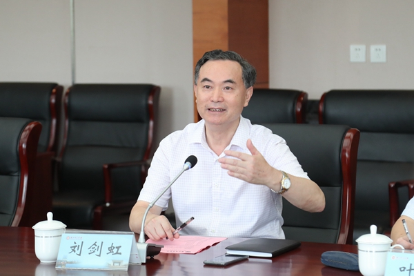 交流座谈会上,刘剑虹介绍了学校的办学历史、发展定位、党组织和干部队伍建设等基本情况,并重点介绍了学校近年来的工作思路和体会,一是一所大学要有长远的奋斗目标,以目标来激励师生;二是保持战略定力,按照高等教育规律办学,坚持以学科建设为主线,持续推进人才培养模式改革、人事制度改革和科研与服务地方管理制度改革,全面推进教育国际化;三是坚持“有所为,有所不为”,瞄准“国字号”,从人才队伍着力,在科研上求突破,寻求重点和特色发展。