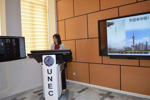 9月28日,正值孔子诞辰和全球孔子学院日之际,阿塞拜疆汉语教学网络远程培训课程在阿经济大学(UNEC)举行启动仪式,阿利耶夫基金会副主席莱拉•阿利耶娃(阿利耶夫总统长女)、执行主席阿列克别罗夫、中国驻阿塞拜疆大使郭敏、阿塞拜疆经济大学校长穆拉多夫、阿塞拜疆语言大学孔子学院外方院长拉菲克•阿巴索夫、中方院长李姬花及部分师生出席本次活动。郭大使指出,乐见阿塞拜疆汉语教学蒸蒸日上,中国政府鼓励两国青少年学习对方国家语言,以进一步增进相互了解和友谊。中国驻阿使馆将一如既往提供必要支持和协助,不断扩大中阿文化和教育合作。阿语言大学孔子学院师生展示了葫芦丝、书法、诗歌朗诵和舞蹈。