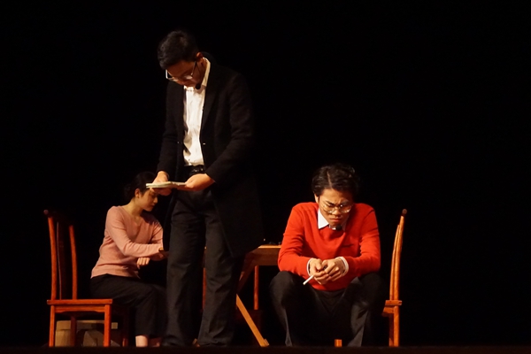此次参加胡瑗文化节,为了剧情更加完整丰富,带给观众更好的观剧体验,剧组决定在之前巡演简短版的基础上多加两幕,修改剧本,细化故事情节,深入刻画人物形象。为了突出艺术学院特色,剧组还特意请两位同学在第四幕用大提琴和小提琴现场演奏话剧主题音乐,融入得非常自然。学生演员们在一遍遍的排练中刻苦磨炼演技,在感受话剧魅力的同时,收获成长的喜悦。
