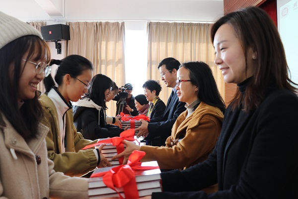 俞栋副局长与王伦光院长为“师院法律援助工作站”揭牌;与会领导为知识产权专业全体同学赠送了法治文化词典等书籍。社会发展与管理学院聘任俞栋为客座教授,并为其颁发了聘书。