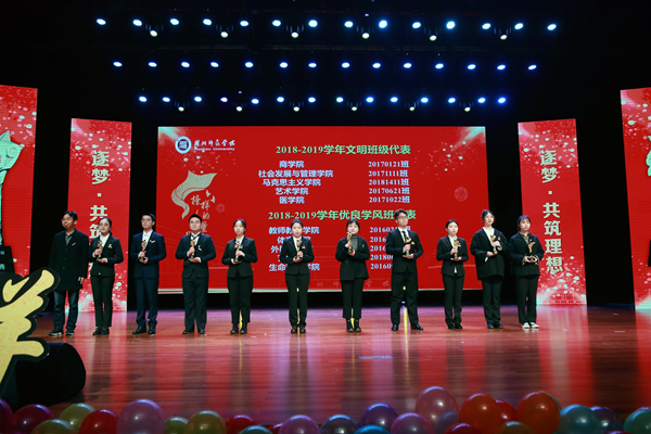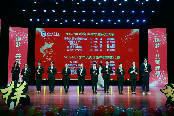 本次典礼共分为“逐梦•共筑理想”、“励志•传递信念”、“创新•绽放光芒”、“领航•成就梦想”四个篇章,颁发了国家奖学金、省政府奖学金、校长奖学金、国家励志奖学金、校优秀学生、优秀学生干部、文明班级、优良学风班等一系列荣誉。